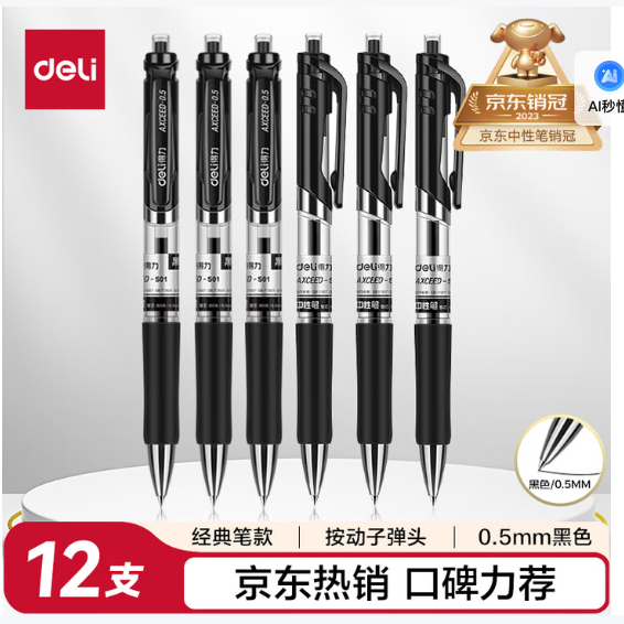 得力S01中性筆 黑色 0.5mm